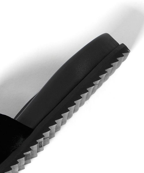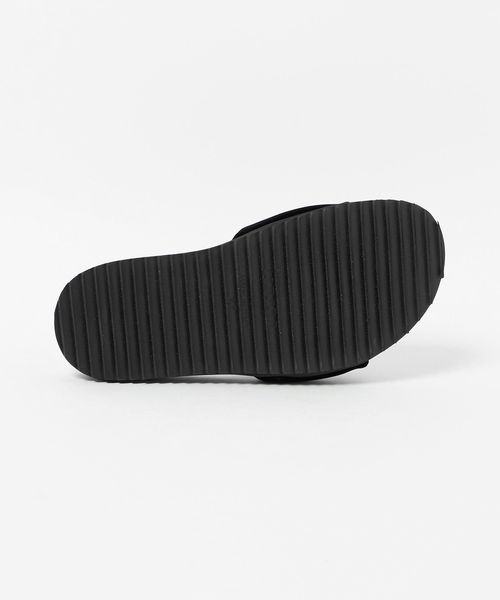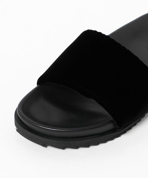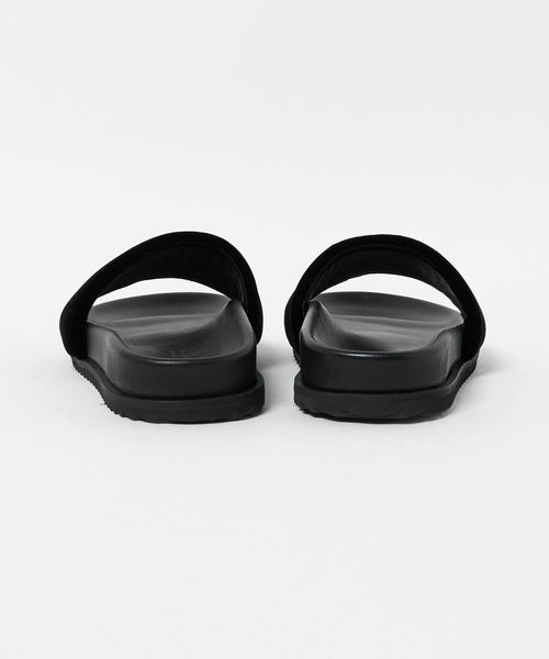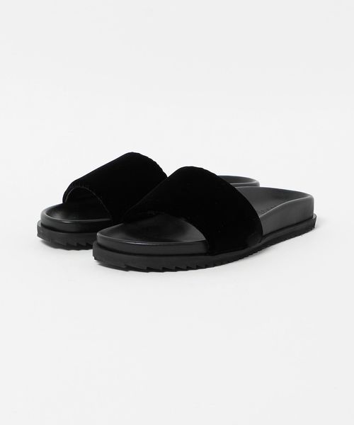 シンプルにオールブラックで仕上げたスライドサンダル。