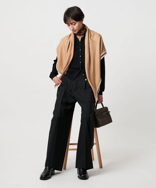 薄手のカーディガンの上からさっとはおりアクセントとして。