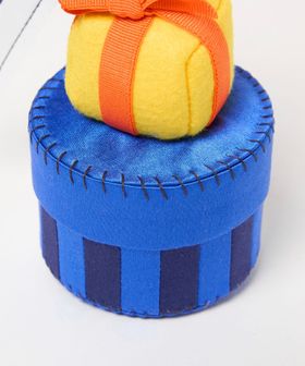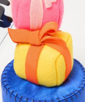 わくわくするギフトボックスをカラフルに表現した、遊びごころたっぷりな一品。