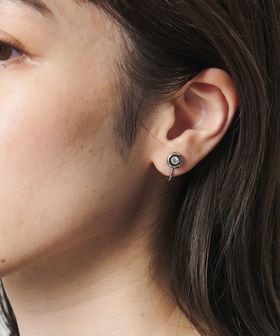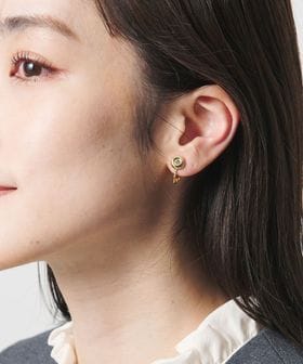 プチサイズのメタルにビジューを1粒配したイヤリング