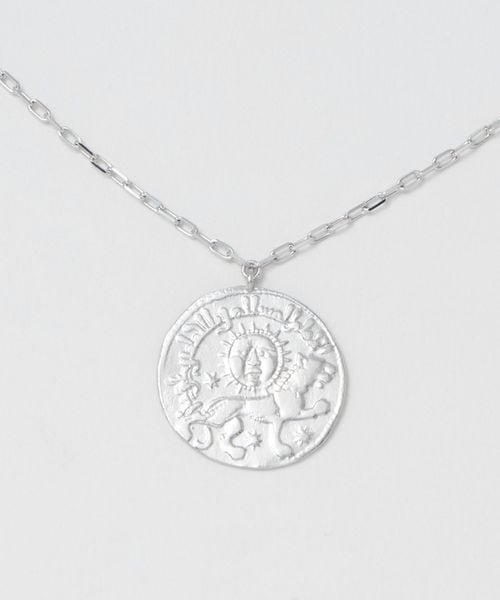 ギリシャ神話の神々や古代王の肖像が静かに佇むコインモチーフに、太陽とライオンという力強いシンボルをまとった一品。