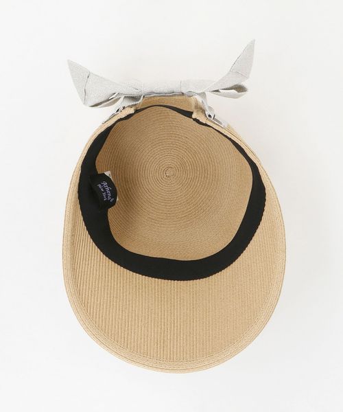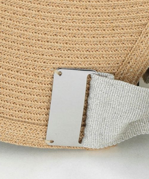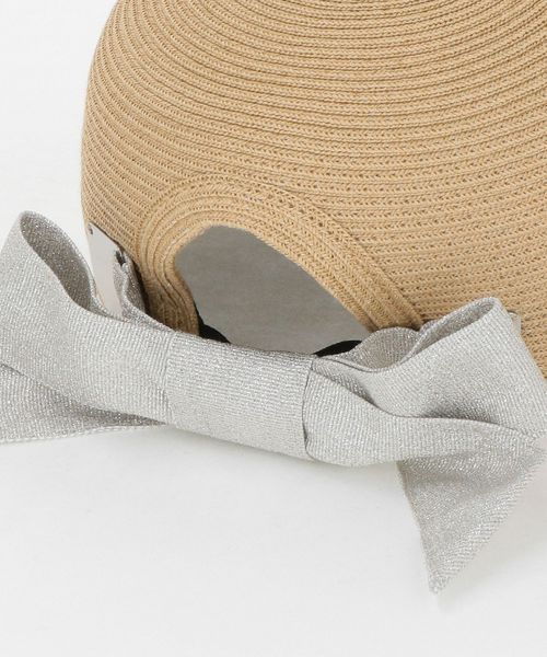 カジュアルになりがちなキャップ型も、メタルパーツとグリッター感のあるリボンを組み合わせることで、大人に似合うラグジュアリーな雰囲気に。