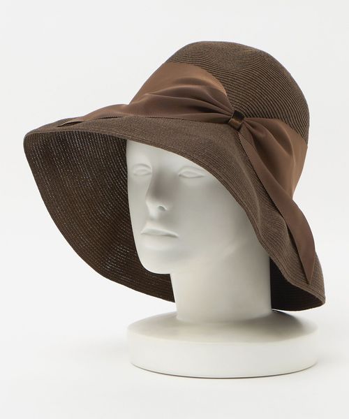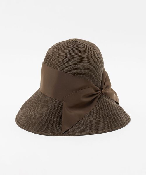 さりげない光沢感を放つリボンが上品なキャペリン型ハット