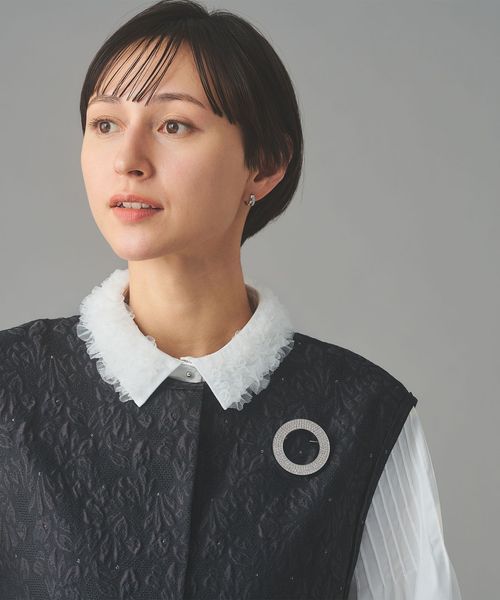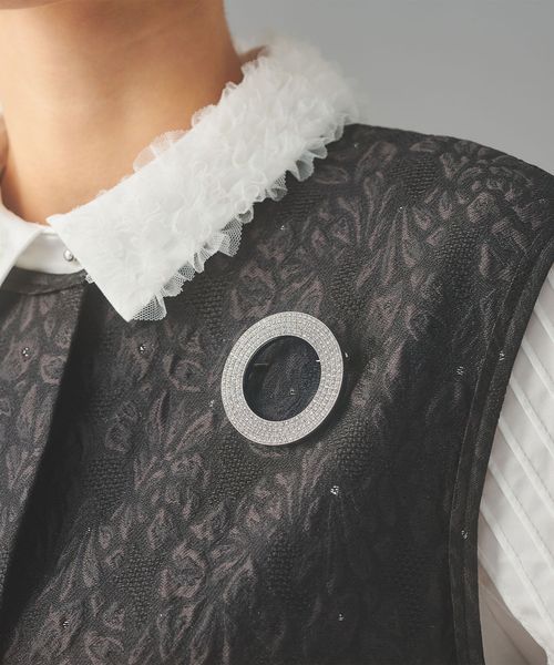 細かいビジューをたっぷりと使用した、上品な輝きが魅力的なブローチ。