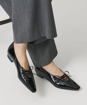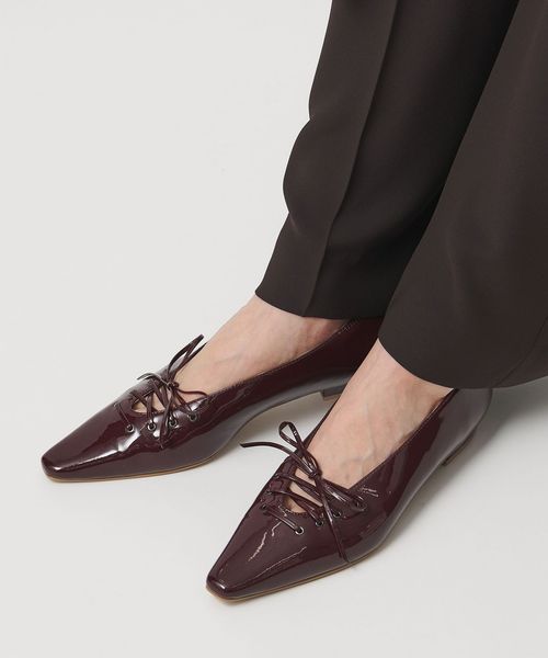 エナメル レースアップ フラットシューズ