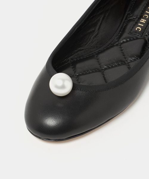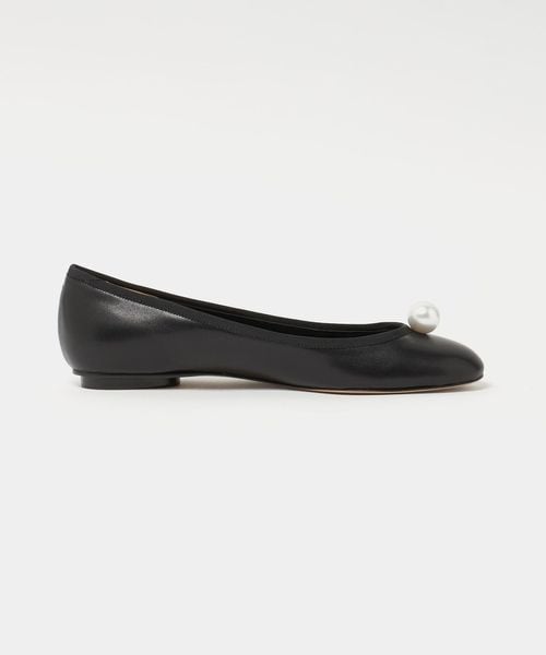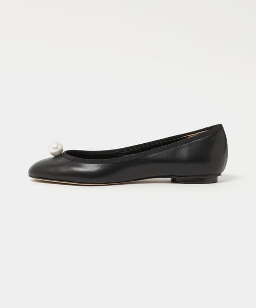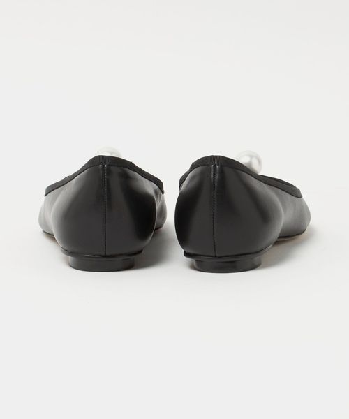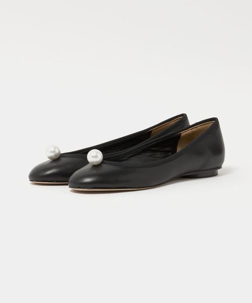 コロンとしたイミテーションパールが愛らしいフラットシューズ