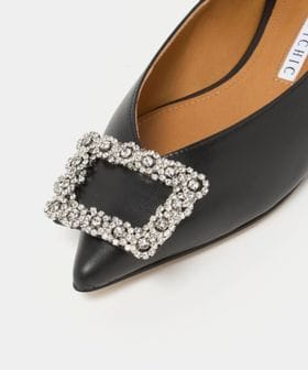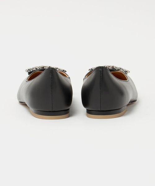 ブランドの定番人気のビジューパーツをあしらった、ラグジュアリーな雰囲気漂うフラットシューズ。