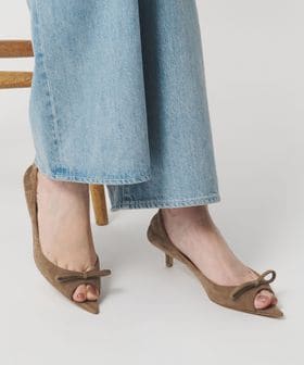 すっきりとしたトゥとミニマルなリボンがポイントのオープントゥパンプス