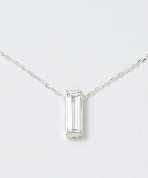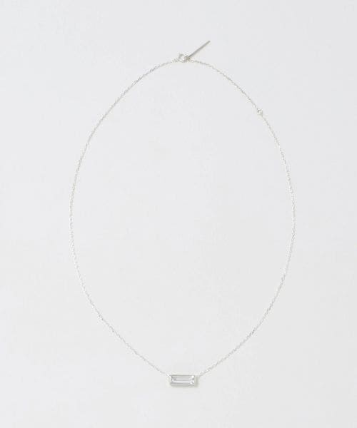 シンプルな中に凛とした印象を与える、スクエア型のクリスタルを配したネックレス。