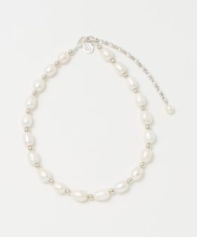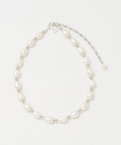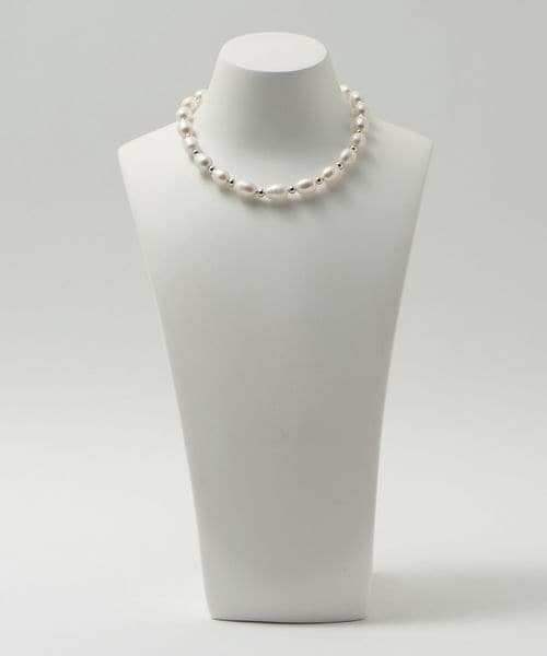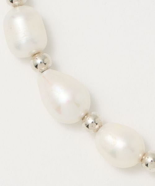 ぷっくりとした存在感のあるパールと、つなぎ目にシルバーカラーのパーツを用いて、カジュアル感をプラスしたネックレス。