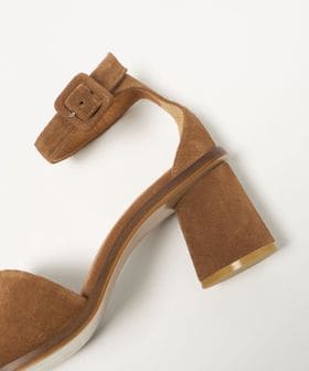バックル付きのアンクルストラップも可愛らしいポイントに。