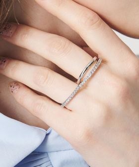 艶やかなプレーンラインと繊細なパヴェラインを重ねた、存在感のあるダブルラインのリング。