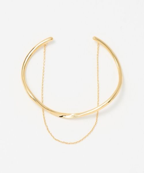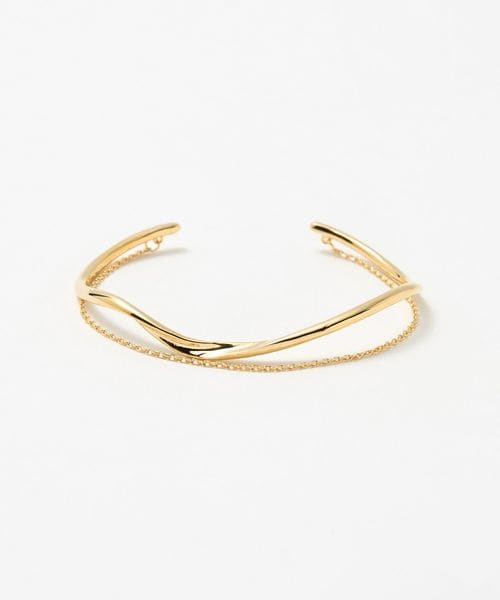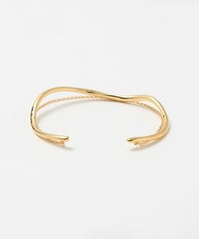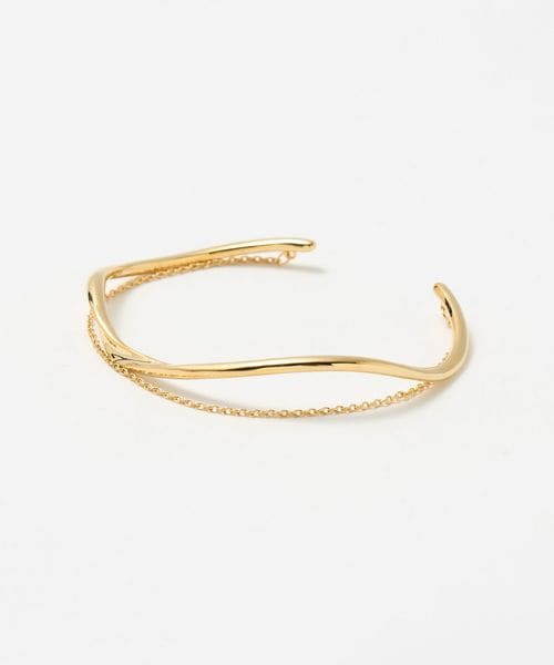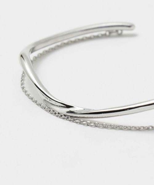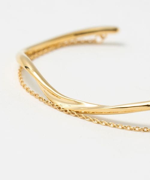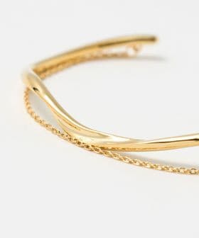 滑らかなカーブを描くメタルラインと、繊細なチェーンを組み合わせたレイヤードデザインのバングル
