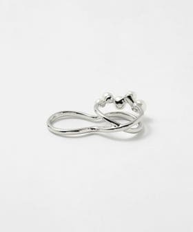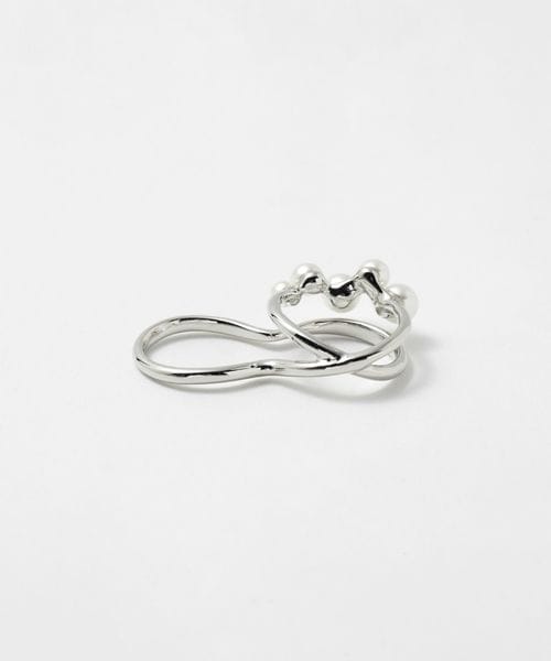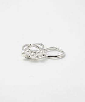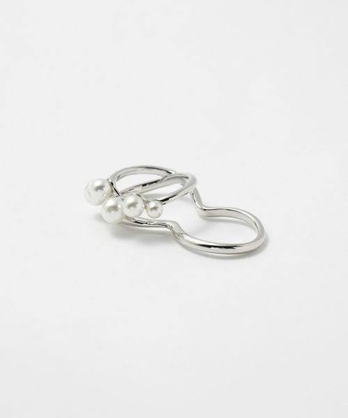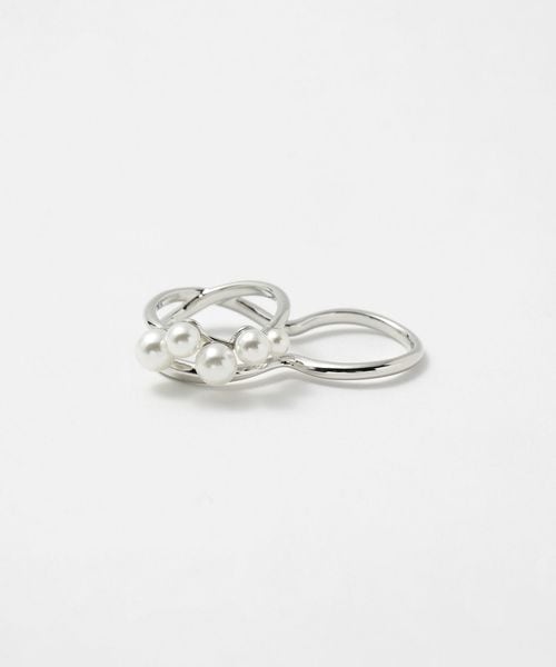 イミテーションパールをあしらった、モダンなシルエットのダブルフィンガーリング