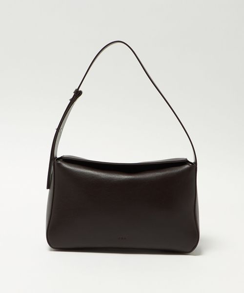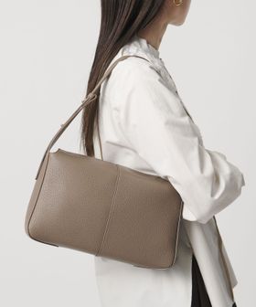 端正なスクエアフォルムにやわらかなボリュームを添えたショルダーバッグ