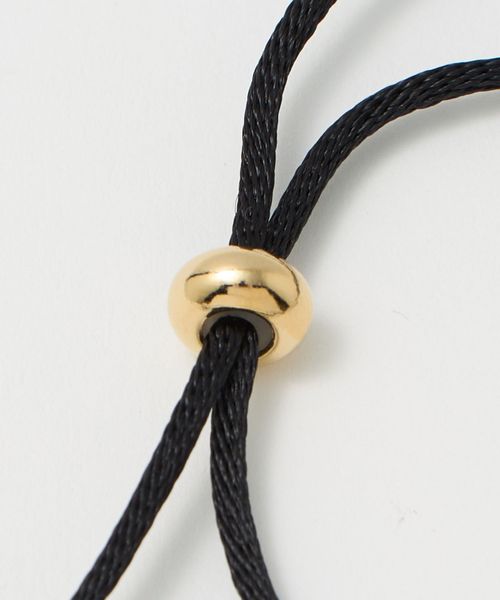 肌当たりの優しいサテンのコードは、スライドパーツで長さの調節ができ襟元のデザインに合わせてアレンジいただけます。