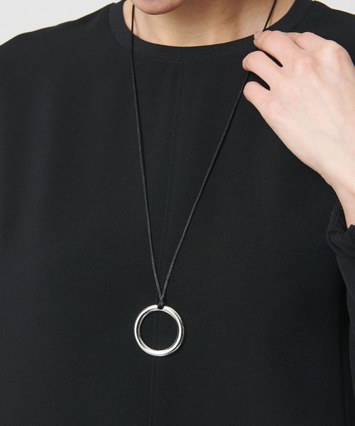 艶やかに磨かれたサークルモチーフをトップに配したネックレス。