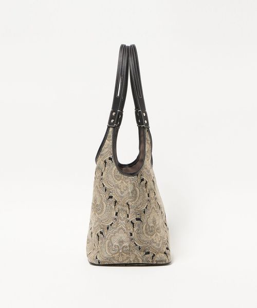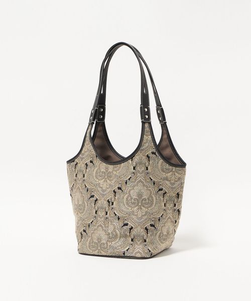 クラシカルな柄をジャカードで表現した縦長シルエットのトートバッグ