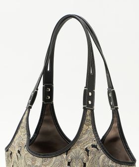 肩掛けしやすい長めのハンドルは、ブランドのアイコンでもある二股デザイン。