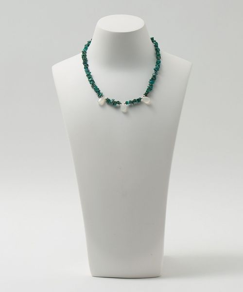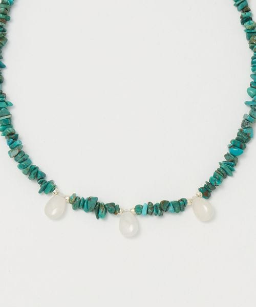 鮮やかなブルーグリーンの合成ターコイズと、やわらかなミルキーホワイトのホワイトアゲートを組み合わせたネックレス。