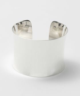 なめらかな曲面が手首を包みこむ存在感のあるバングル