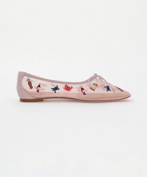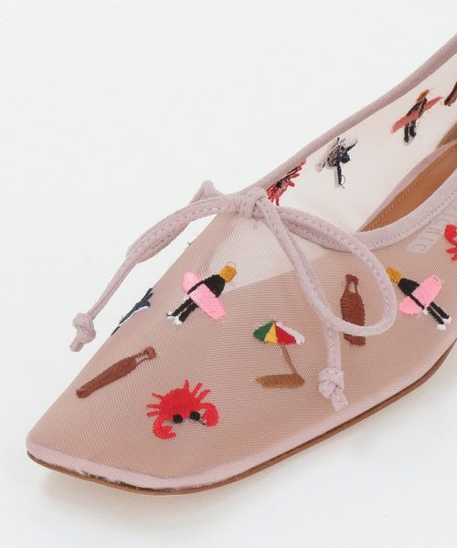 カニやサーファー、パラソルなど夏らしいモチーフを刺繍したパンプス