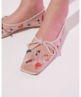 キャッチーな絵柄ながらも、落ち着いたスクエアトゥと甘いリボンのバランスが大人な印象に。