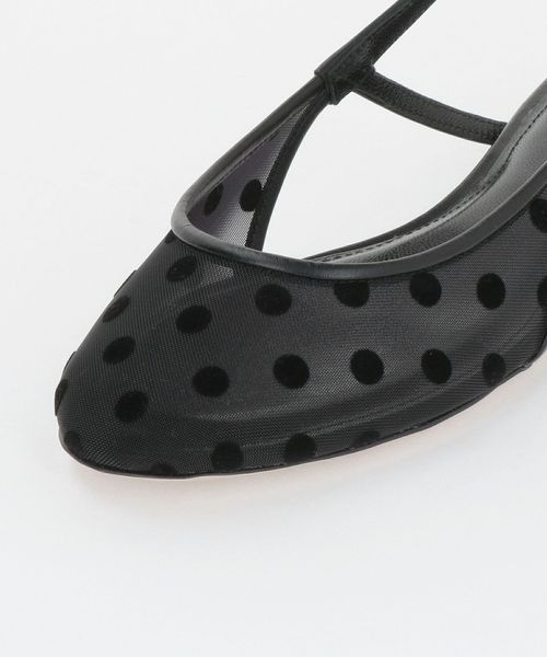 繊細なドット柄が女性らしさを引き立てつつ、華奢なスリングバックストラップが足元に軽やかな上品さをプラスします。