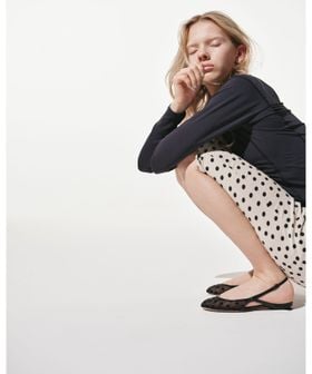 レディーなドット柄に、ほどよい抜け感を添えたフラットシューズ