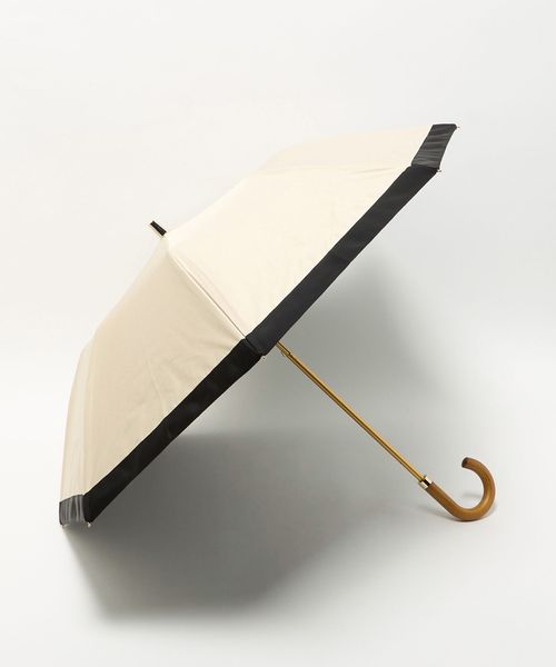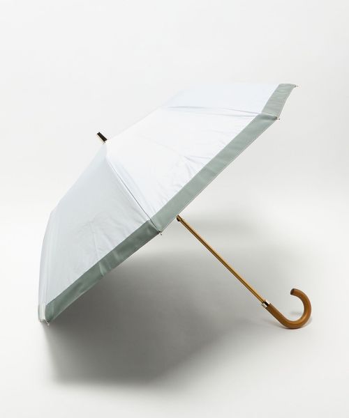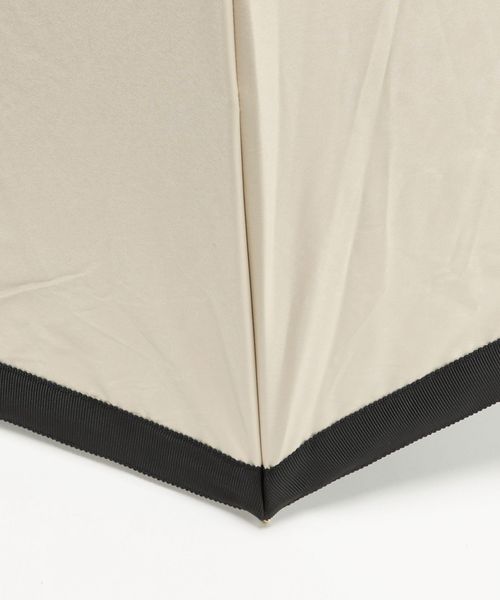 縁取りとバンドに、しっかりとした素材感のグログランリボンをあしらった晴雨兼用の折りたたみ傘。