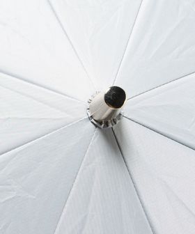 ハットから着想を得た、グログランリボンをあしらった折りたたみ傘