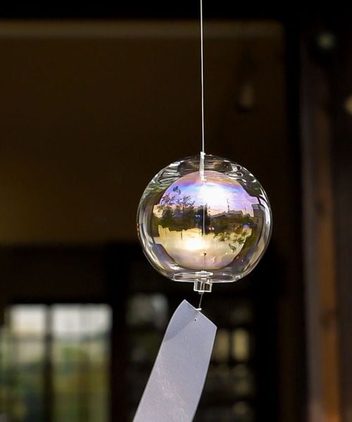 日本の夏の風物詩である風鈴を、自然という観点から生み出しその形を儚く消えるシャボン玉に見立てた虹色風鈴。