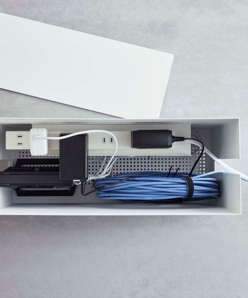 かさばるLANケーブルや電源タップ・コード類からモデム、外付けハードディスクなどの収納用ボックス。