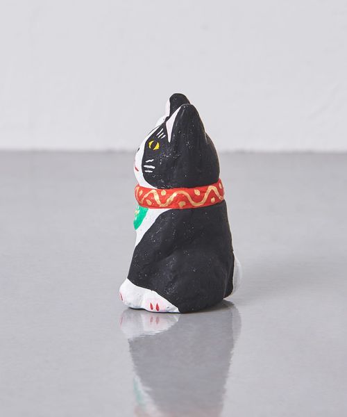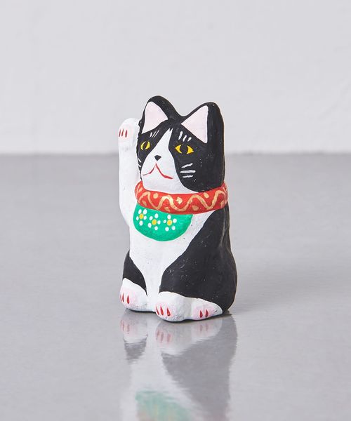 黒のお面を被ったようなはちわれと言われる猫の招き猫は、ひとつひとつ丁寧に手作りされています。