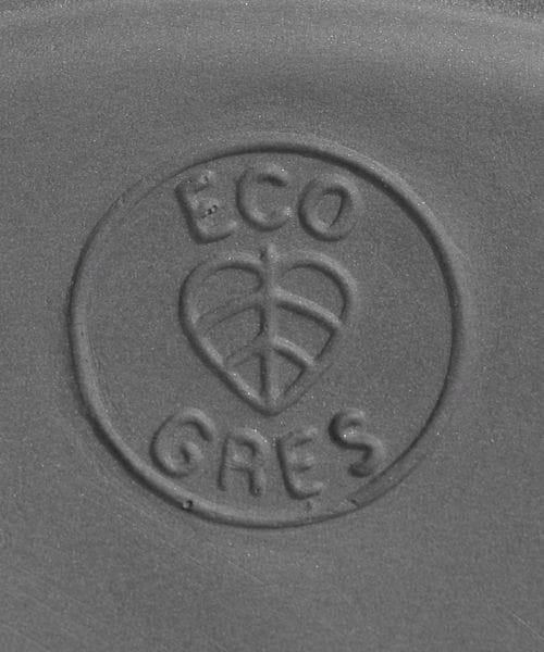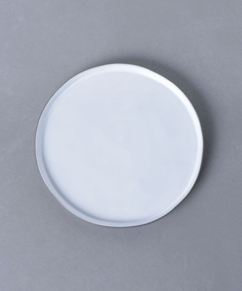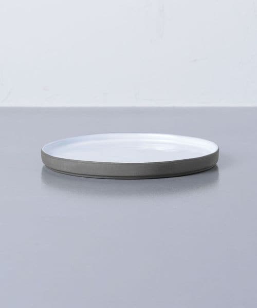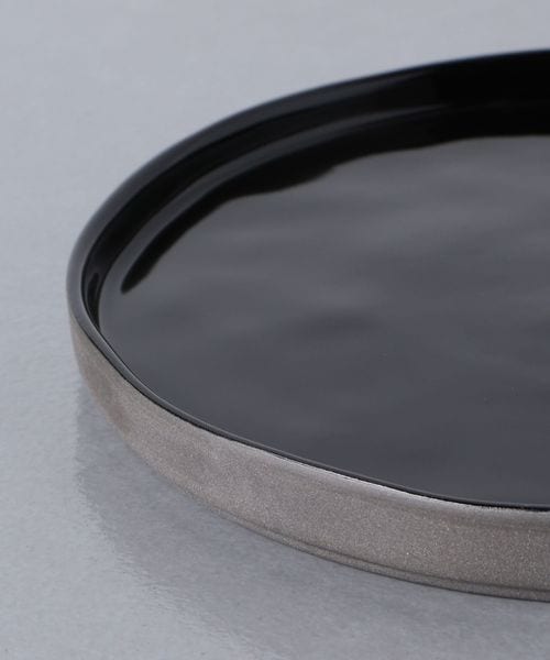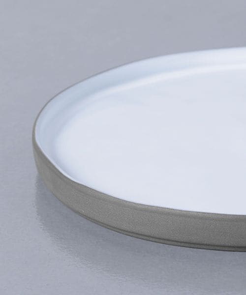 チャコールグレーの素地の色と白い釉薬のツートンカラー、フラットで直線的なデザインに、曲線的なやわらかい表面の凹凸が自然に取り入れられたシンプルな形が特徴的。