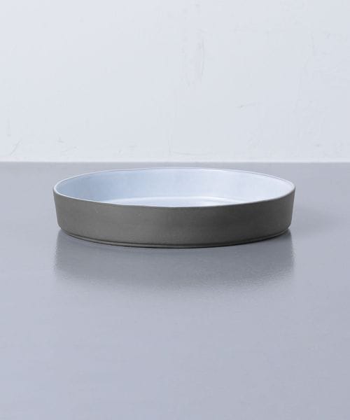 チャコールグレーの素地の色と白い釉薬のツートンカラー、フラットで直線的なデザインに、曲線的なやわらかい表面の凹凸が自然に取り入れられたシンプルな形が特徴的。