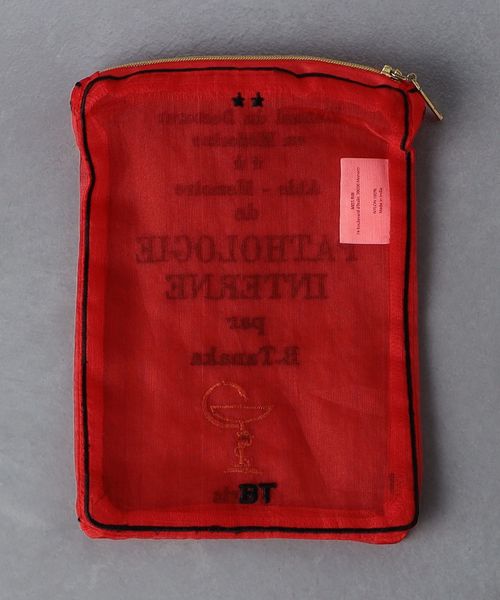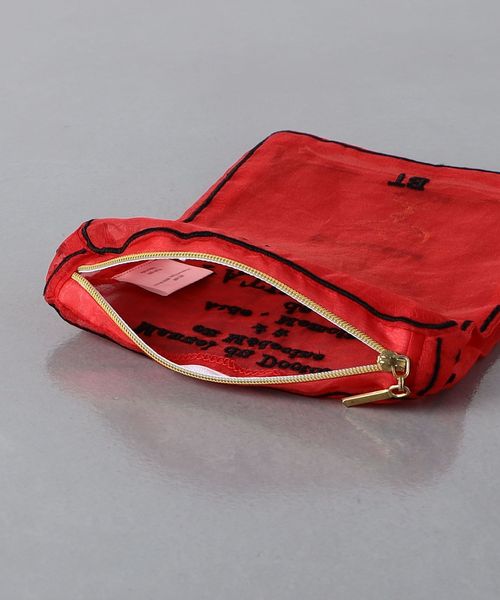 赤いオーガンジーのベースに黒を基調とした刺繍、ジップにはゴールド色を使用しアンティーク風の雰囲気が際立ちます。