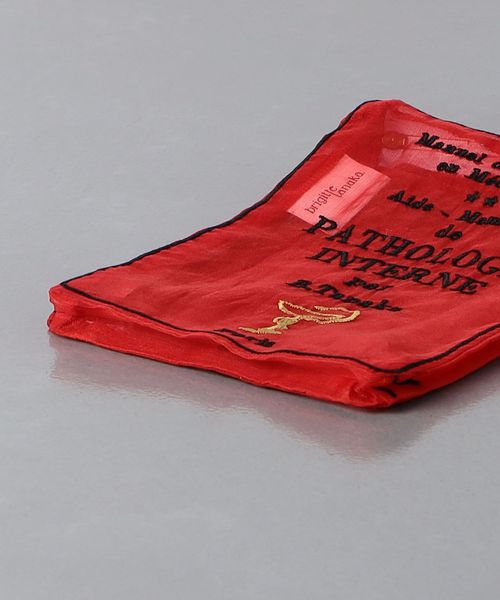 フランスのアンティークの医学書からインスパイアされた刺繍を施したポーチは本が入るサイズ感。