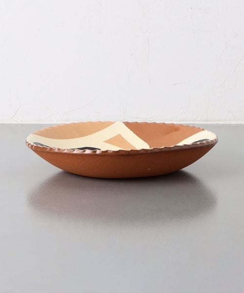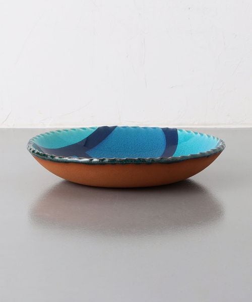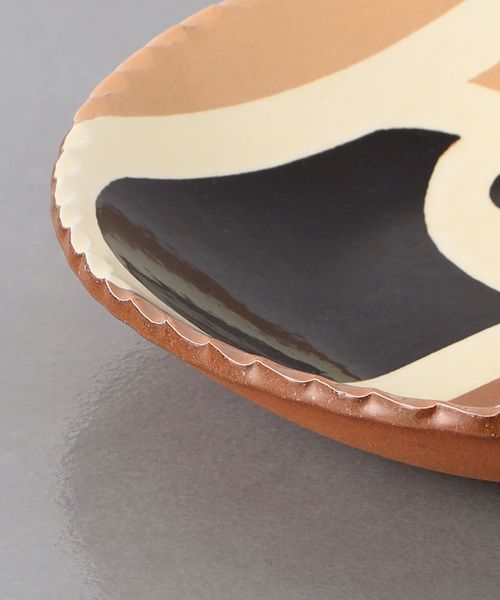 比較的低火度で焼成させる軟陶器に<UNITED ARROWS>のブランドロゴをグラフィカルに施してデザインされています。