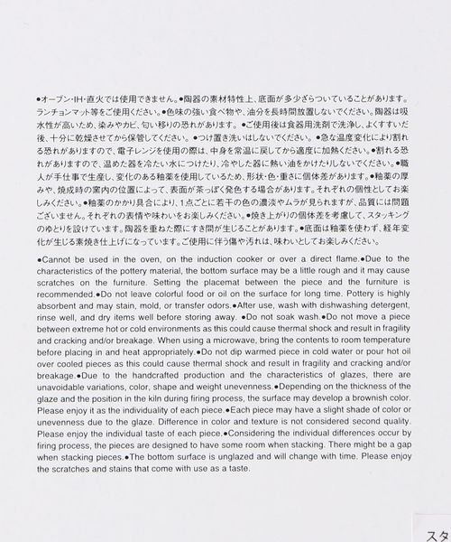 釉薬には、日本の長石とイギリスのカオリンを用いており、マットでありながらも複雑に発色させるため、多色の顔料を配合し、酸化チタンで窯変させています。