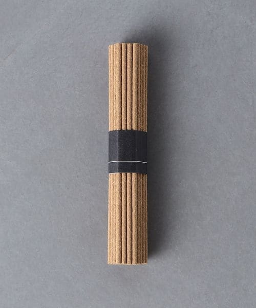 ヒバの荒粉を練り込み、染料を使わずナチュラルに仕上げたお香は、和木の天然オイルと厳選された香原料が織りなすバランスの良い洗練された香りです。