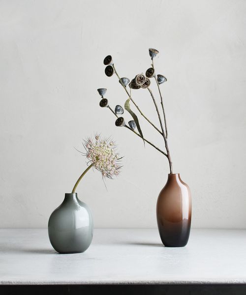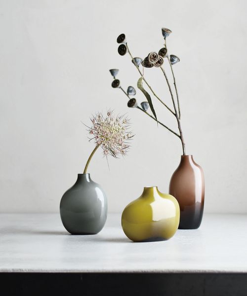 動きのあるふっくらとしたかたちが遊び心をくすぐり、様々な草花との組み合わせが愉しめる一輪挿しSACCOシリーズのベース。