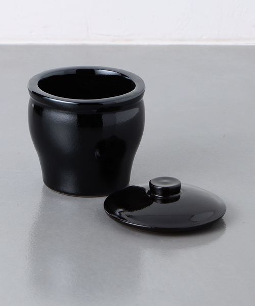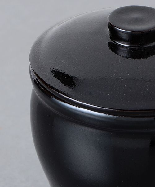伊賀の地で五代続く陶工所で生まれたこのかめは、素地には粒子の小さな赤土を用い、黒飴釉を掛けて焼き締めることで、吸水率が極めて低くなり、耐酸性も高くなっています。