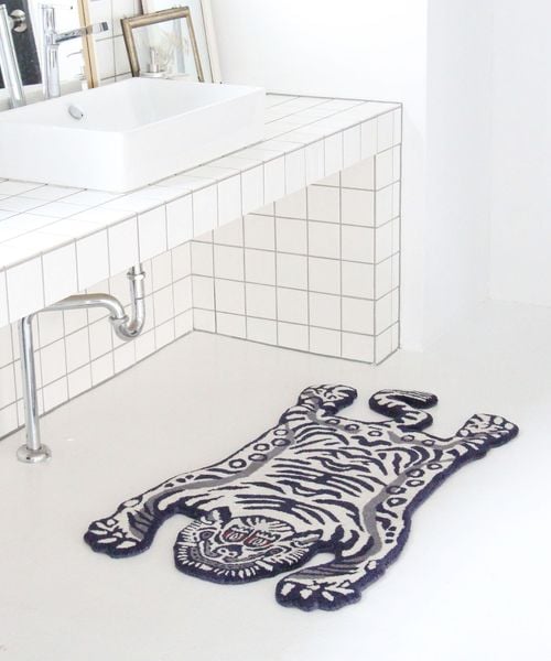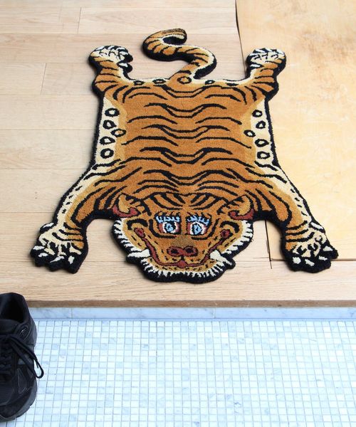 様々なデザインがあるタイガーラグの中から、アイコニックなタイプを元にインドにて手作業で作られています。