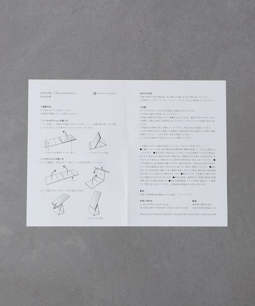 「身だしなみを整える方へ、正しい道具を提供する」を目的に、特許取得のナピュアミラーを使用し、ユニセックスでエイジレスな鏡製品を開発・製造・販売。鏡に映る姿だけではなく、鏡を使っているその姿までをも美しく見せるため、日常の細かな所作や行動の研究を続けています。