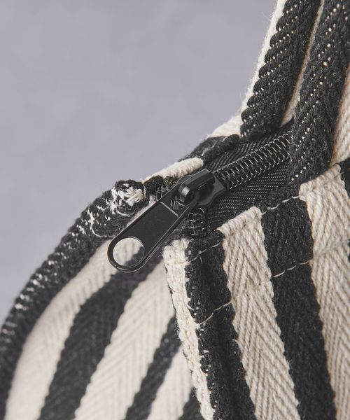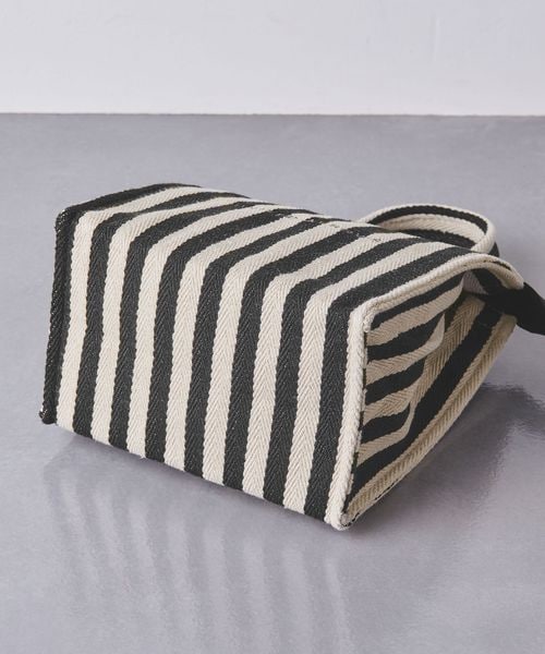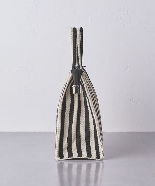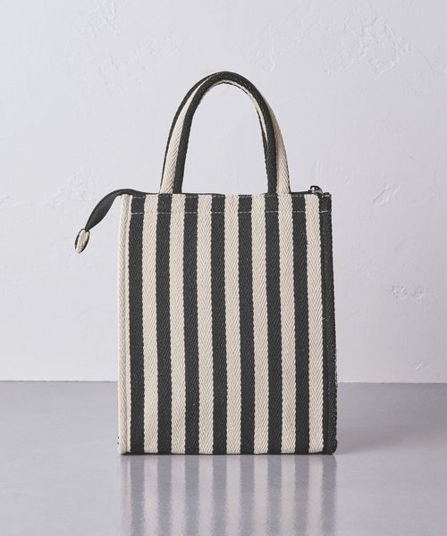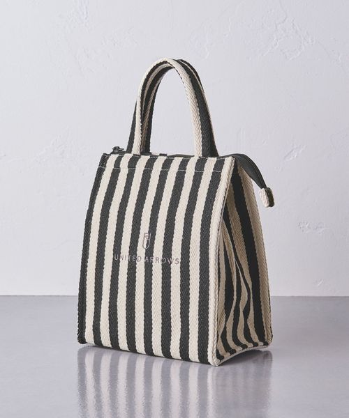 モノトーンのストライプ柄がスタイリッシュなランチトートバッグ