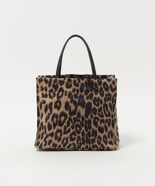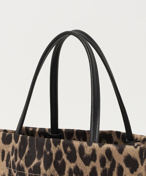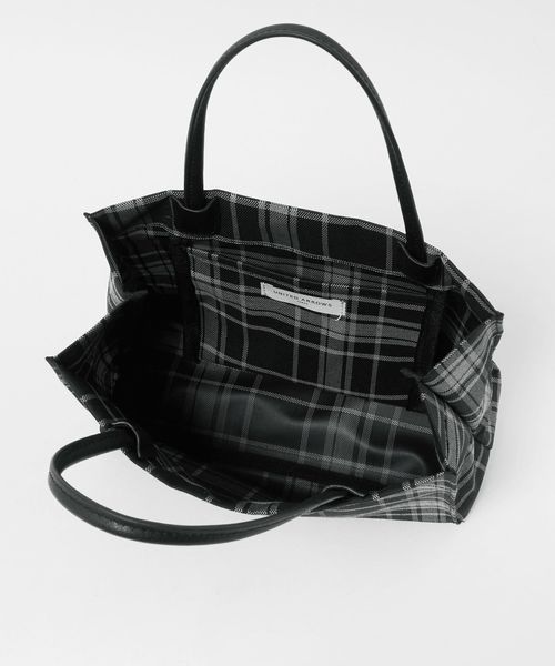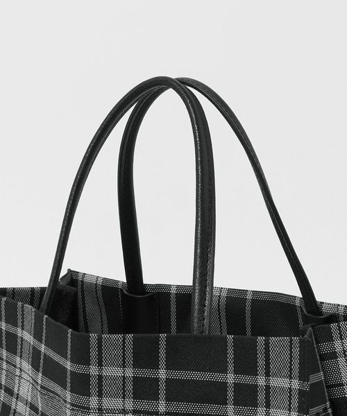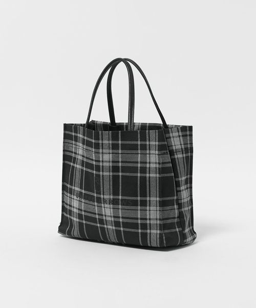 落ち着いたモノトーンのチェック柄とトレンドのレオパード柄が、シーズンムード高めるトートバッグ。