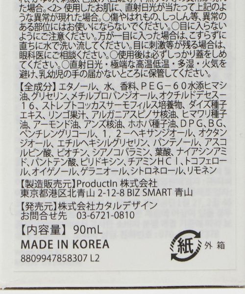 1. 化粧品使用時または使用後直射日光により使用部位が赤い斑点、腫れやかゆみなどの異常症状や副作用がある場合は専門医等と相談すること