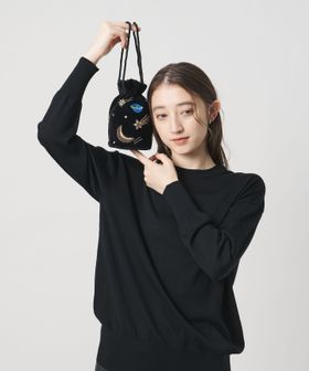 エンブロイダリーモチーフがキュートな巾着型のミニサイズポーチ