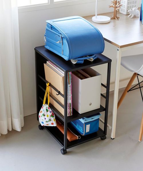 たっぷり収納してもスッキリ目隠し収納ができる、スリムなキャスターワゴン